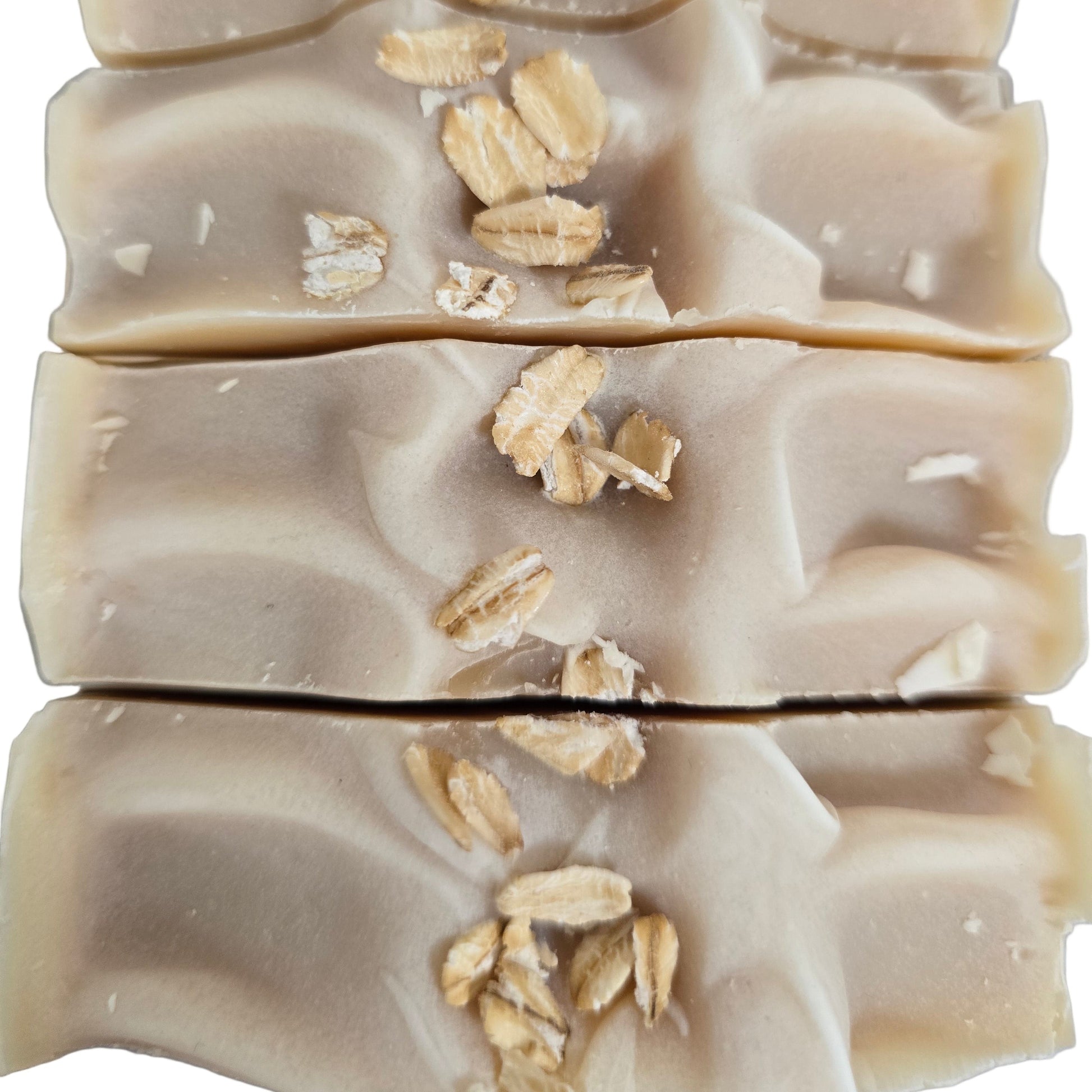 The oatmeal calms dryness and irritation while creating a creamy, comforting lather that leaves skin soft and replenished. Entirely unscented, it carries only the faint, natural warmth of oats — clean, wholesome, and quietly familiar.